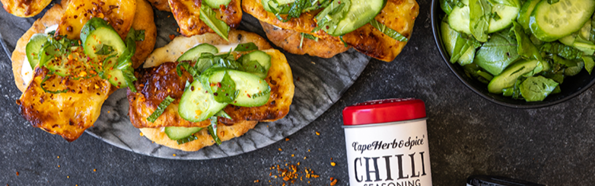 Drizzle halloumi with honey and then sprinkle with Cape Herb & Spice Chilli Crunch.