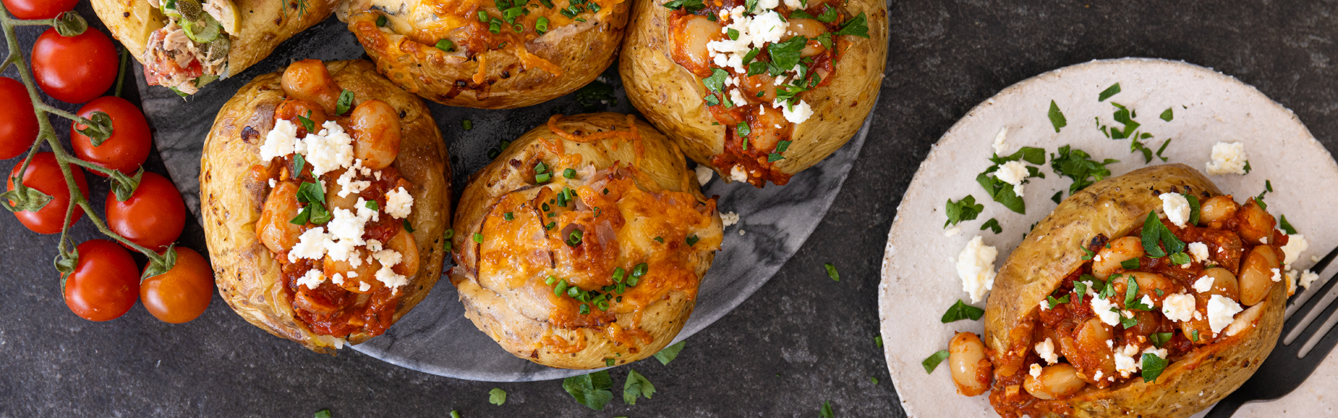 Fill baked potatoes with a generous amount of baked butter beans.