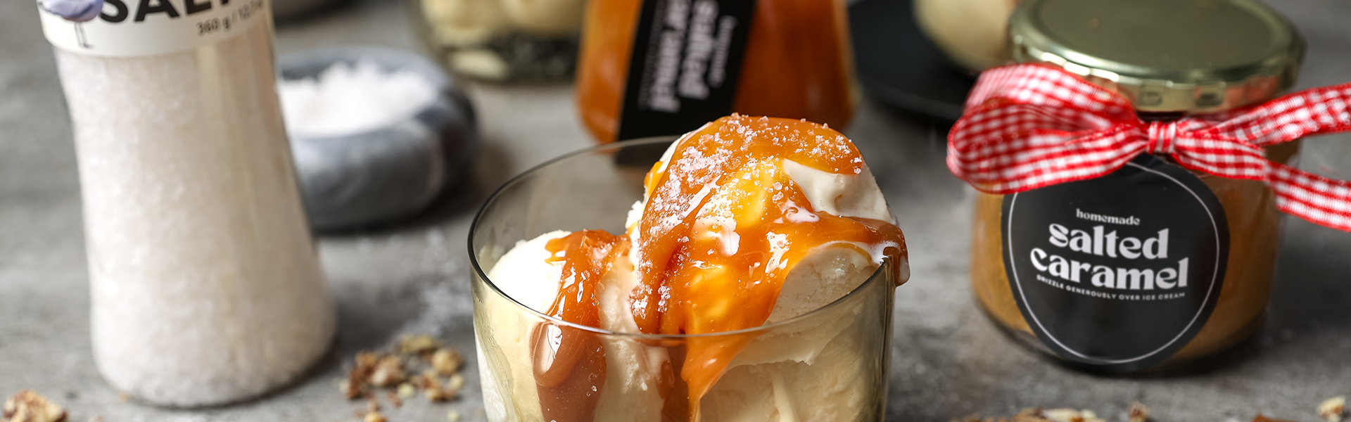 Silky caramel sauce with a sprinkle of salt – ideal drizzled over ice cream, swirled into cheesecake, or bottled up as a sweet gift.