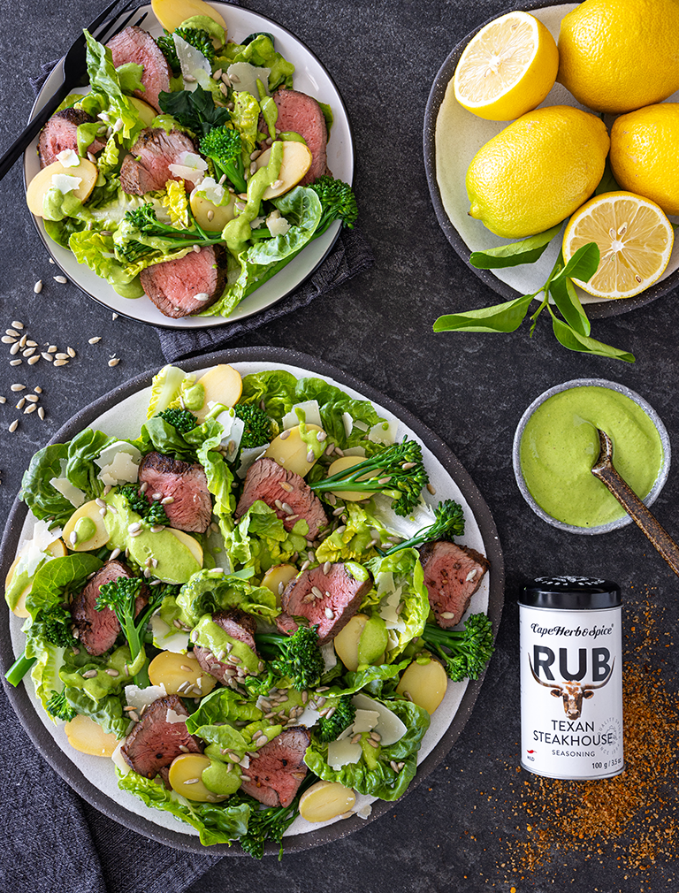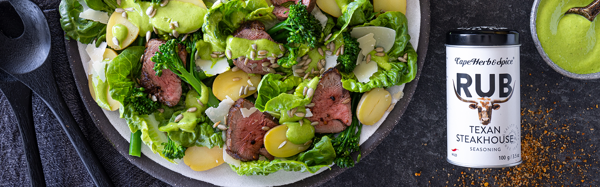 Try this vibrant Pesto Steak & Potato Salad, generously seasoned with our sweet and spicy Cape Herb & Spice Texan Steakhouse Rub