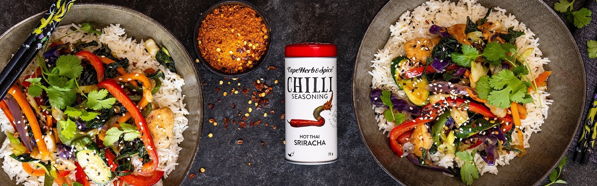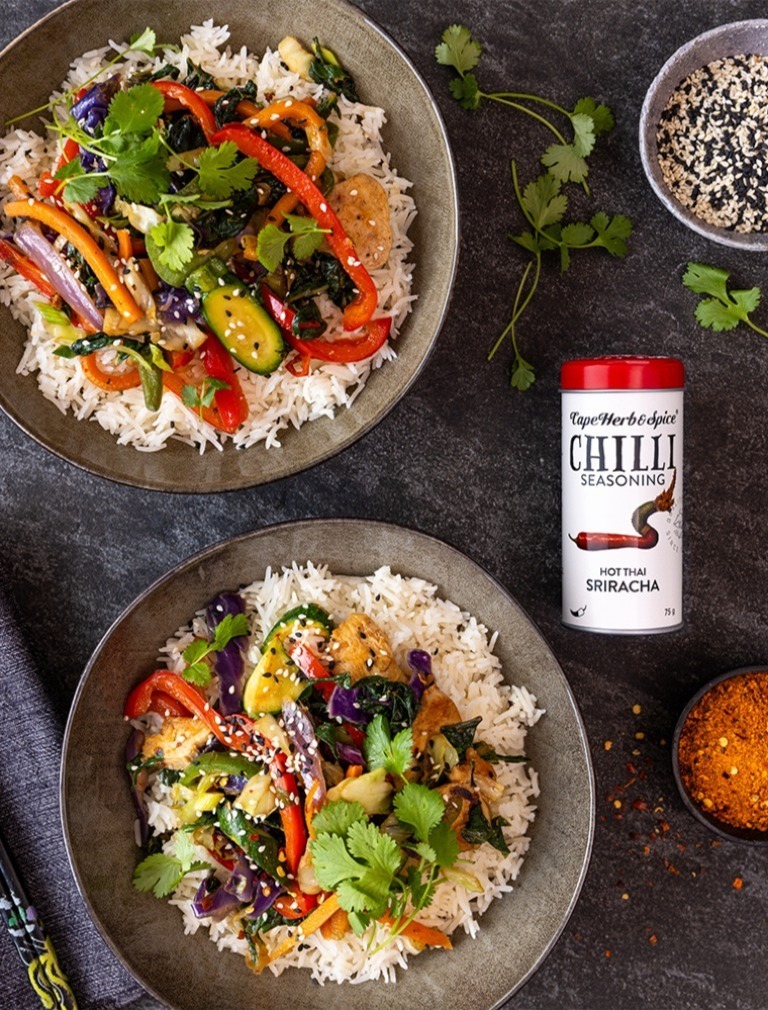 Season with a sprinkle of Cape Herb & Spice Sriracha Chilli Seasoning.